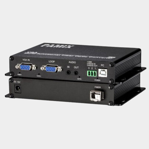 PAMIX VGA to fiber converter is a multi-function media converter, it support VGA video channel with local video loop, USB (Keyboard & mouse) channel, audio bidirectional channel, RS232/RS485 bidirectional channel, IR reverse channel. It support resolution up to 1920x1080P @ 60Hz and downward compatible. PAMIX VGA media converter was in operation for long time proof its stability and compatibility with most manufacturers. It’s ideal for high-performance computer remote interactive operations.